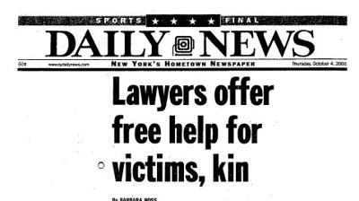 Recipient of 2002 ABA Pro Bono Publico Award and other awards for 9/11 relief work. Following the 9/11 attacks, worked 7 days per week for 6 weeks in the recruitment, training and coordination of volunteer lawyers at the Family Assistance Center on Pier 94 in New York City to assist victims' families in obtaining death certificates and entitlements to which issuance of a death certificate was an essential prerequisite. Interviewed, counseled, and consoled victims' grieving family members and assisted in the preparation of legal documents for issuance of death certificates, supervised other volunteers, and coordinated daily de-briefings with mental health professionals. Helped establish NYCLA's Adopt-A-Family Program which provided free legal services throughout the probate process for families of firefighters, police officers, and other first responders.